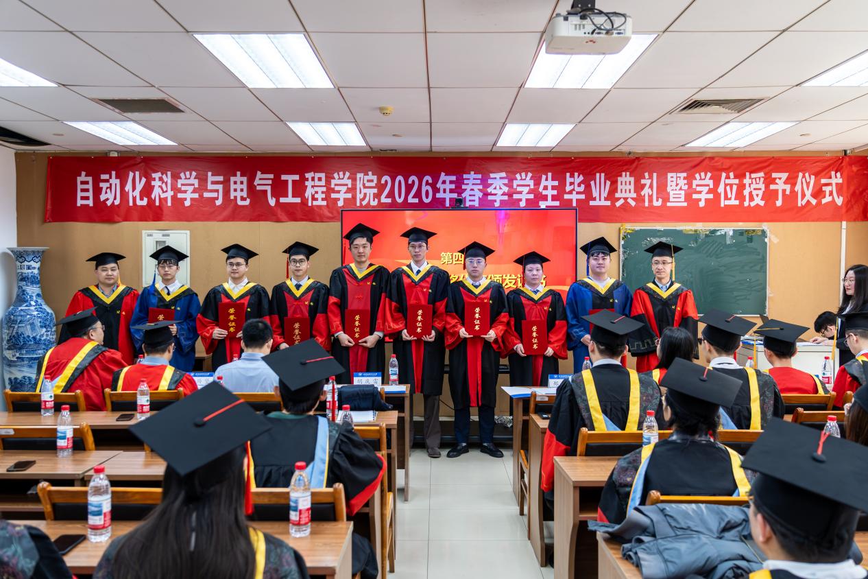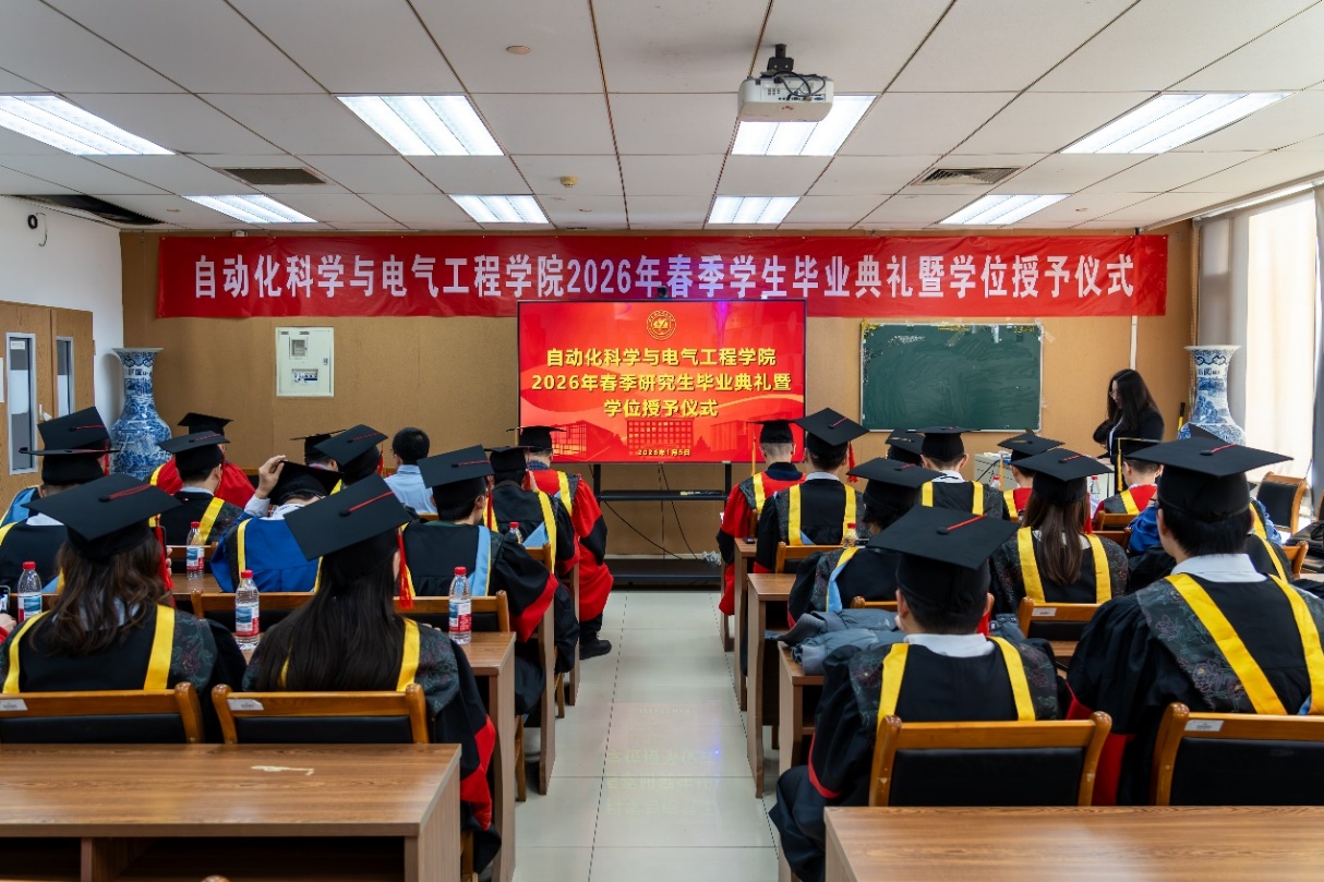 (通訊員 婁錦昊 喬嬌/攝影 郄家潤(rùn))2026年1月5日下午15:00,自動(dòng)化科學(xué)與電氣工程學(xué)院于學(xué)院路校區(qū)新主樓E706會(huì)議室舉行2026年春季研究生畢業(yè)典禮暨學(xué)位授予儀式。學(xué)院院長(zhǎng)胡慶雷、黨委書(shū)記鄭征、黨委副書(shū)記賈子超,副院長(zhǎng)王薇、王興堅(jiān)、占帆,黨委委員張海、院長(zhǎng)助理張超,專兼職輔導(dǎo)員和碩士生、博士生共30余位畢業(yè)生代表及親友出席典禮。典禮由團(tuán)委書(shū)記喬嬌主持。